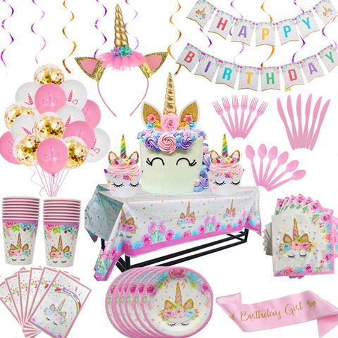 Unicorn Đảng Nguồn Cung Cấp Thiết Lập Unicorn Trang Trí Và Bộ Đồ Ăn Cho Cô Gái Tiệc Sinh Nhật